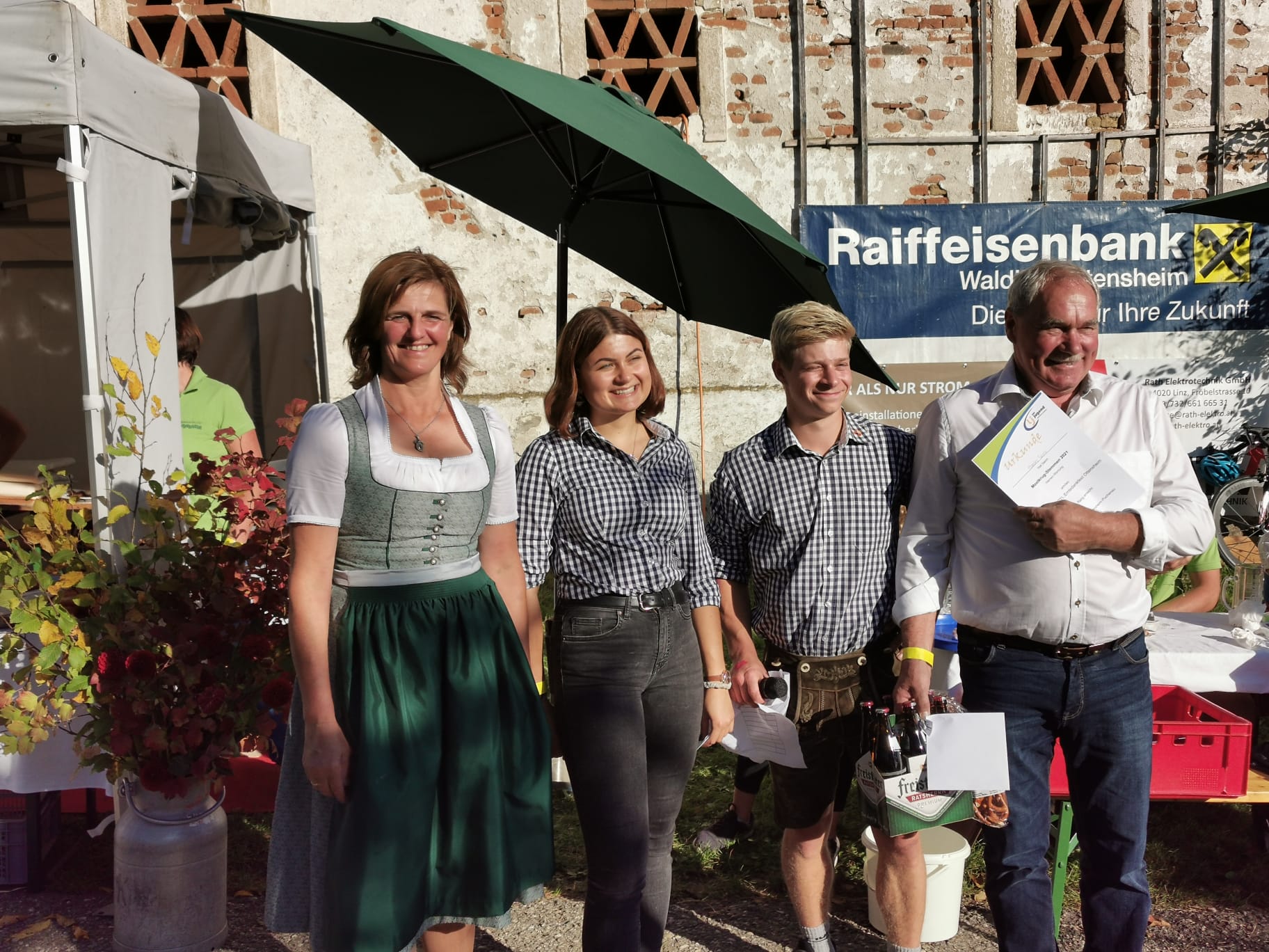 Am 3. Oktober unterstützten wir die Ortsbauernschaft Ottensheim beim Erntedankfest und anschließenden Hoffest. Beim Rahmenprogramm „Mostkrug-Stemmen“ durften wir in der Herrenwertung unseren Bürgermeister, Franz Füreder, in der Damenwertung unserer Ortsbäuerin Maria Hagenauer und in der Kinderwertung Elias Schimpelsberger zum ersten Platz gratulieren. Es war ein wunderschönes Fest!