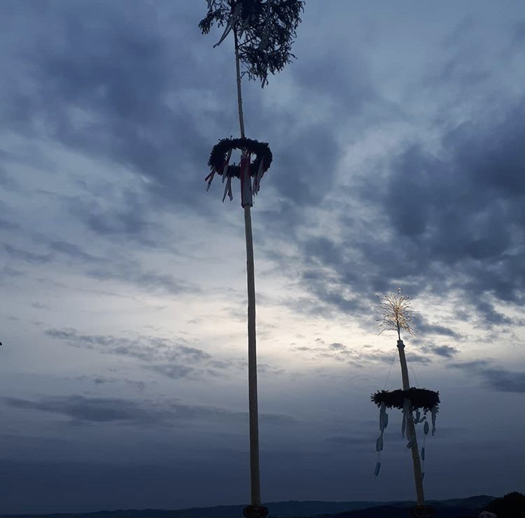 Nun ziehren schöne und ausgefallene Maibäume die Gärten.
